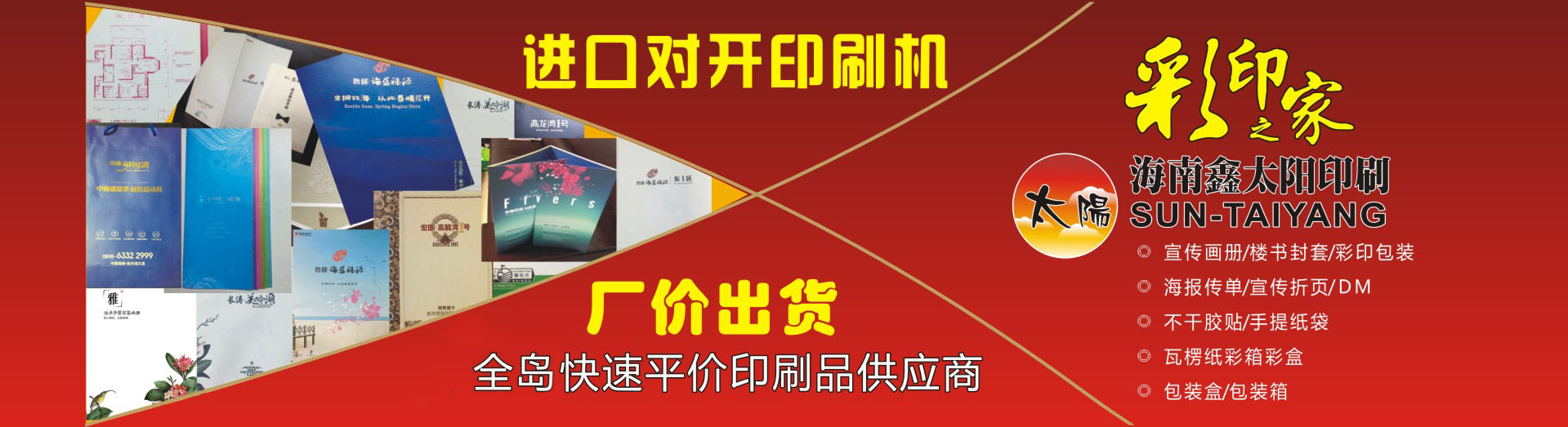 海南鑫太陽印刷業(yè)有限公司成立于2002年,主要從事生產(chǎn)海報(bào)畫冊、傳單簡介、精品包裝、掛歷臺歷、不干膠貼、手提紙袋、瓦楞紙包裝箱和彩箱紙盒等,公司有日本、德國等對開及四開高速彩色印刷機(jī)、自動膠裝機(jī)、自動鎖線機(jī)、自動復(fù)膜機(jī)等先進(jìn)的自動化設(shè)備,業(yè)務(wù)涉及商業(yè)、地產(chǎn)、水產(chǎn)、食品、農(nóng)林、藥品、化工、航空等行業(yè)的彩印包裝及宣傳印刷品。我公司另外還設(shè)有紙箱包裝廠,可以更好地為客戶配套生產(chǎn)各種檔次級別的瓦楞紙箱彩盒、普通紙箱紙盒、精裝禮盒等大型產(chǎn)品包裝,產(chǎn)品范圍包括花炮箱、飲料箱、食品箱、魚箱、花箱等。